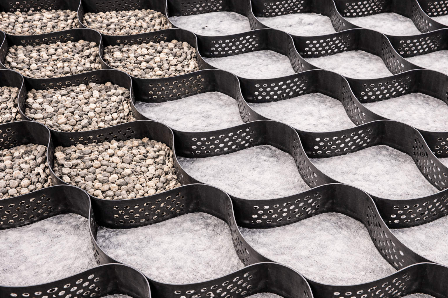 Geokrata komórkowa PEHD to ekonomiczne i trwałe rozwiązanie do stabilizacji powierzchni w wymagających warunkach gruntowych.
